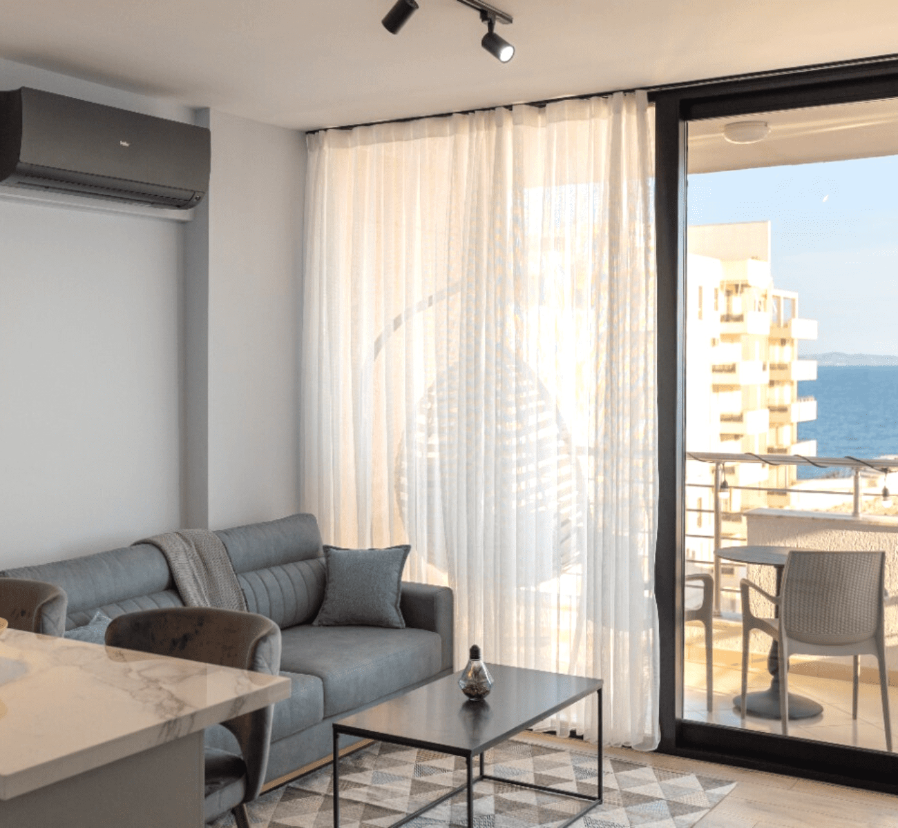 Ofrojmë super apartament me pamje nga deti me qera. Apartamenti ndodhet në Vollga, në katin e 5 të një ndërtese, të re me ashensor dhe të mirëadministruar. Apartamenti ka sipërfaqe 90 m2 dhe tipologji 2+1. Organizohet në ambjentin e ndenjes +kuzhina, dy dhoma gjumi, tualet dhe ballkon. Te gjitha ambjentet ofrojnë pamje nga deti, dritë natyrale gjatë gjithë ditës. Ambjenti është i arreduar në mënyrë bashkëkohore dhe ka një investim deri në detaj. Për më shumë informacion ose një vizitë në pronë mos hezitoni të na kontaktoni!